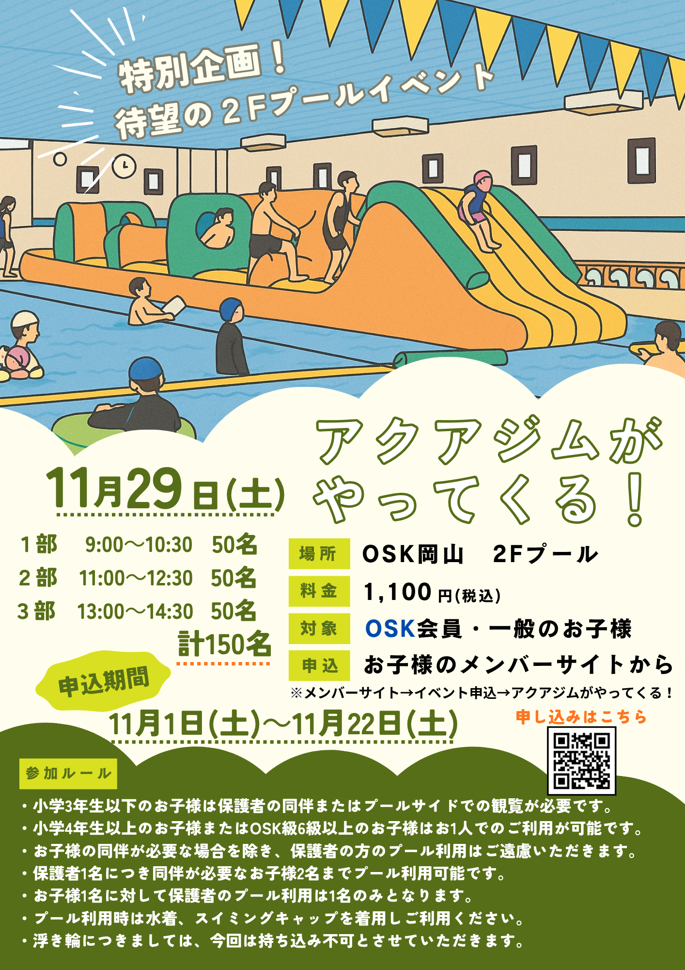 ※ログイン後、ホーム→イベント申込→「アクアジムがやってくる!」をご選択ください。
