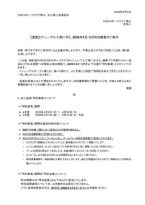 【重要】リニューアル工事に伴う、2026年4月・5月特別営業のご案内